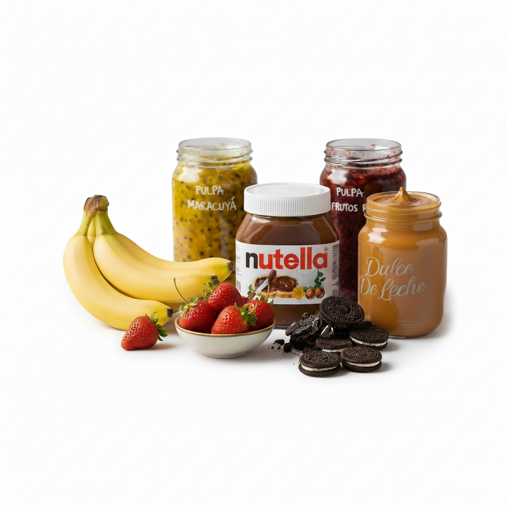 Nutella, Oreo, Dulce de leche, Banana, Frutos rojos, Maracuyá y Frutilla
